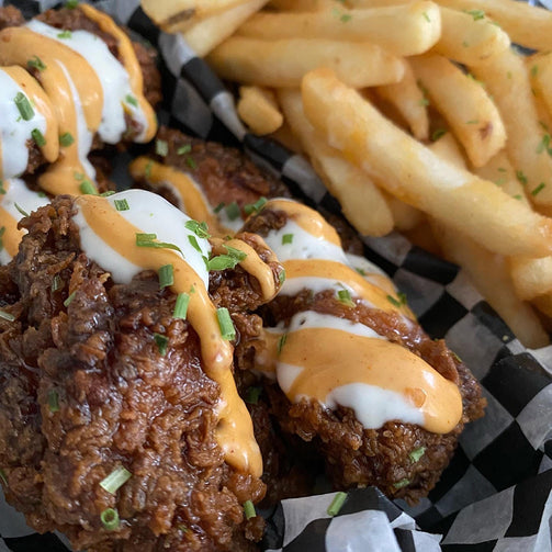 Get ready to experience the ultimate in flavor and texture with our signature 24 hour jerk marinade wings and crispy fries combo! Our juicy and tender honey jerk wings are marinated for a full day in our special blend of seasonings and spices, ensuring that every bite is bursting with bold and delicious flavor. And to make this combo even more irresistible, we pair the wings with a generous serving of crispy fries, cooked to perfection and the perfect complement to our mouthwatering wings.